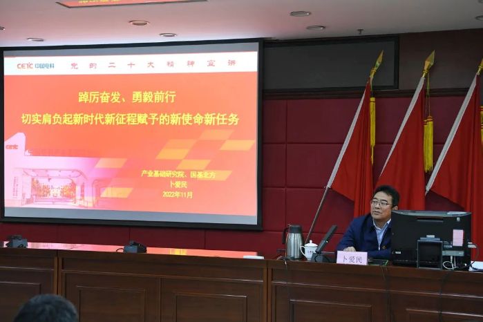 11月18日,中國電科產(chǎn)業(yè)基礎(chǔ)研究院召開學(xué)習(xí)貫徹黨的二十大精神宣講會。中國電科產(chǎn)業(yè)基礎(chǔ)研究院院長、中電國基北方黨委書記、董事長卜愛民作宣講報告。
