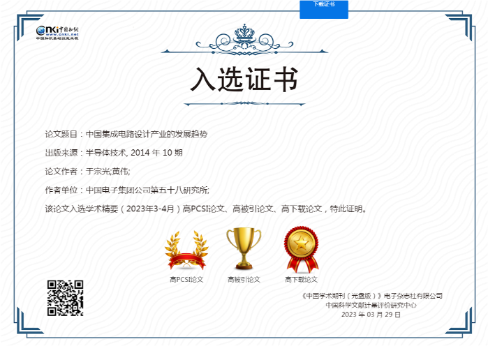 5 中國集成電路設(shè)計(jì)產(chǎn)業(yè)的發(fā)展趨勢(shì) 于宗光,黃偉 高被引,高下載,高PCSI