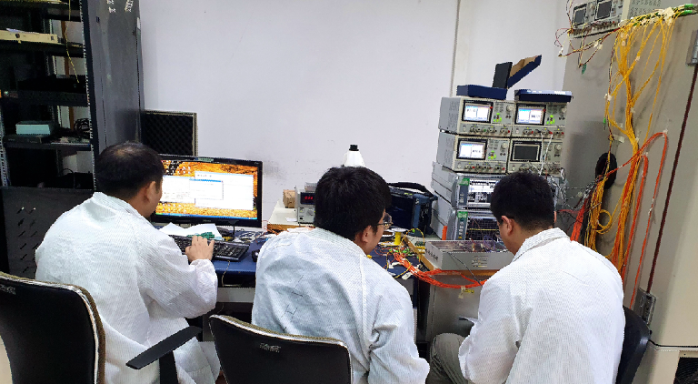 驗(yàn)證與測試工作也馬不停蹄。產(chǎn)品初樣焊裝完成后,光傳輸部員工絲毫沒有歇息,立刻緊鑼密鼓地投入到了調(diào)試和改進(jìn)工作中。從調(diào)試的第一天開始,相關(guān)負(fù)責(zé)人就從未離開第一線,時(shí)時(shí)刻刻都在指揮協(xié)調(diào),甚至還與驗(yàn)證與測試員工一起設(shè)置溫箱、記錄數(shù)據(jù)、測試流程、改進(jìn)軟件,焊線、接線、調(diào)儀器……他們齊心協(xié)力堅(jiān)守崗位,周末無休,終于,在大家的共同努力下,國產(chǎn)化光轉(zhuǎn)換組件通過一次次評審,開始為用戶供貨!