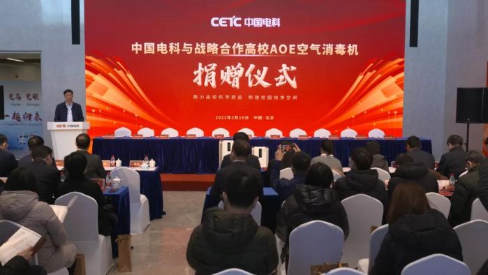 2月16日,中國電科在京舉行“助力高??茖W(xué)防疫 構(gòu)建校園純凈空間”——AOE空氣消毒機(jī)捐贈儀式,向清華大學(xué)、北京大學(xué)、北京航空航天大學(xué)、北京郵電大學(xué)、北京理工大學(xué)等全國十所高校捐贈了最新研制的空氣消毒機(jī),助力校園疫情防控。中國電科副總經(jīng)理何松,國資委、教育部、工信部及上述高校相關(guān)領(lǐng)導(dǎo)出席活動。