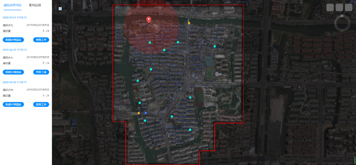 智慧水務云平臺可以通過先進的漏損定位算法和DMA的夜間最小流量,能夠及時發(fā)現(xiàn)漏損并精準提供漏損位置信息,自動判斷、分析各DMA是否泄漏以及當前泄漏水平,為制定檢漏方案提供依據(jù)。在出現(xiàn)停斷水或爆管等突發(fā)事件時,通過智慧水務云平臺的漏損定位,幫助實現(xiàn)排查縮小范圍,減輕一線工作人員排查難度,減少居民停斷水時間。