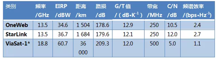 低軌衛(wèi)星至地面用戶的傳輸距離遠(yuǎn)小于GEO-HTS,在路徑損耗方面具備約30 dB的優(yōu)勢(shì)(如表6)。但GEO-HTS采用的大衛(wèi)星平臺(tái)支持更大的發(fā)射功率,可以部分彌補(bǔ)其路徑損耗。例如,ViaSat-1衛(wèi)星的等效全向輻射功率(EIRP)比StarLink衛(wèi)星高24 dB,在采用增益與系統(tǒng)噪聲溫度比(G/T)值同為12 dB/K左右的用戶終端時(shí),ViaSat-1用戶接收機(jī)的載波噪聲比(C/N)比StarLink低7 dB,因此,其頻譜效率更低。換言之,低軌衛(wèi)星在地表的信號(hào)強(qiáng)度比GEO-HTS約高7 dB,若要實(shí)現(xiàn)相同的頻譜效率,其用戶終端天線孔徑約為GEO-HTS的一半。表 6 低軌星座和GEO-HTS用戶下行鏈路預(yù)算注:未查到ViaSat-3衛(wèi)星的鏈路預(yù)算資料,用ViaSat-1衛(wèi)星的進(jìn)行估計(jì)?!?/p>
