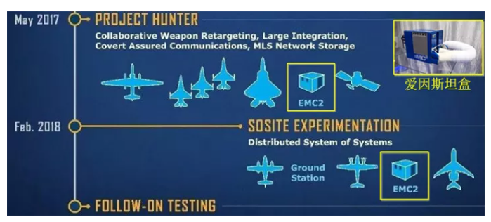 在SoSITE項(xiàng)目的最新試驗(yàn)中,使用了臭鼬工廠開(kāi)發(fā)的復(fù)雜組織體開(kāi)放式系統(tǒng)架構(gòu)(E-OSA)任務(wù)計(jì)算機(jī)版本2(EMC2),即所謂的“愛(ài)因斯坦盒”,如圖7所示。洛克希德·馬丁公司開(kāi)發(fā)的E-OSA兼容了美空軍OMS標(biāo)準(zhǔn)?!皭?ài)因斯坦盒”可為系統(tǒng)之間的通信提供了安全保護(hù)功能,在將相關(guān)能力部署到操作系統(tǒng)之前,“愛(ài)因斯坦盒”能夠確保快速而安全的實(shí)驗(yàn)。“愛(ài)因斯坦盒”不僅是一個(gè)通信網(wǎng)關(guān),它可被比作一部智能手機(jī),能夠運(yùn)行很多不同的應(yīng)用程序,具備實(shí)現(xiàn)動(dòng)態(tài)任務(wù)規(guī)劃、ISR以及電子戰(zhàn)的能力。